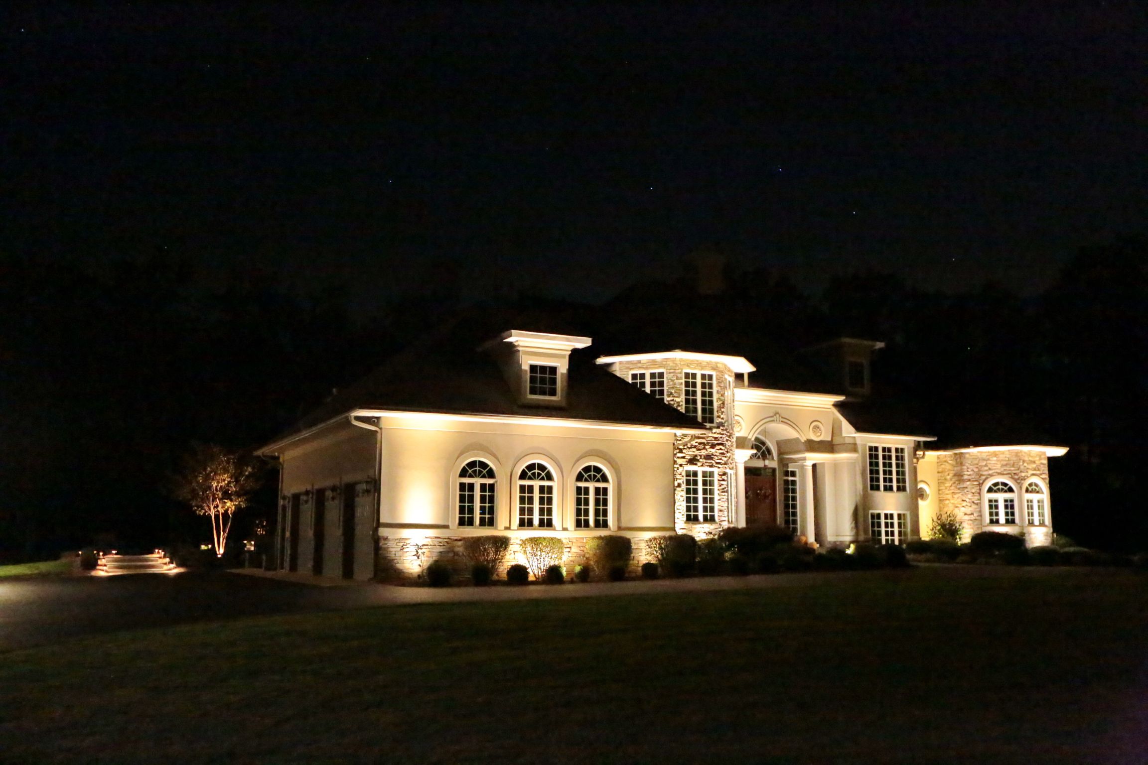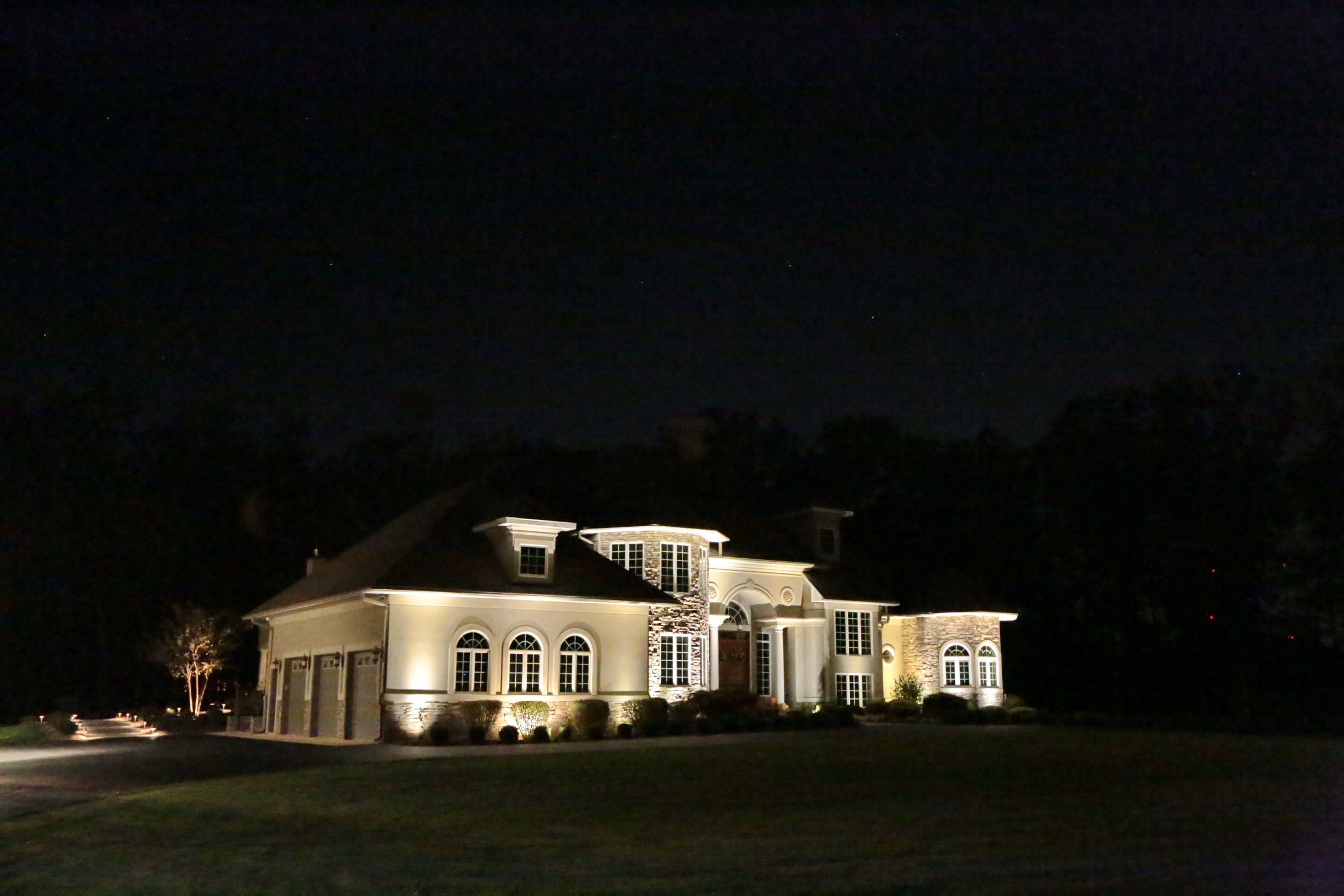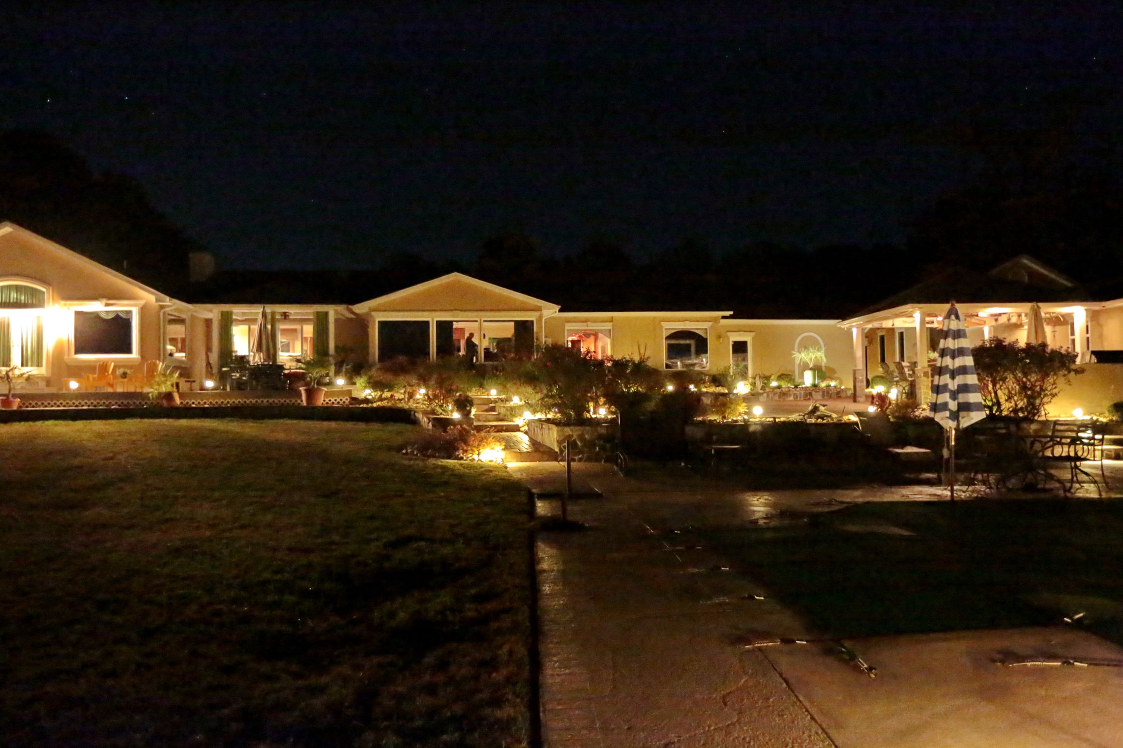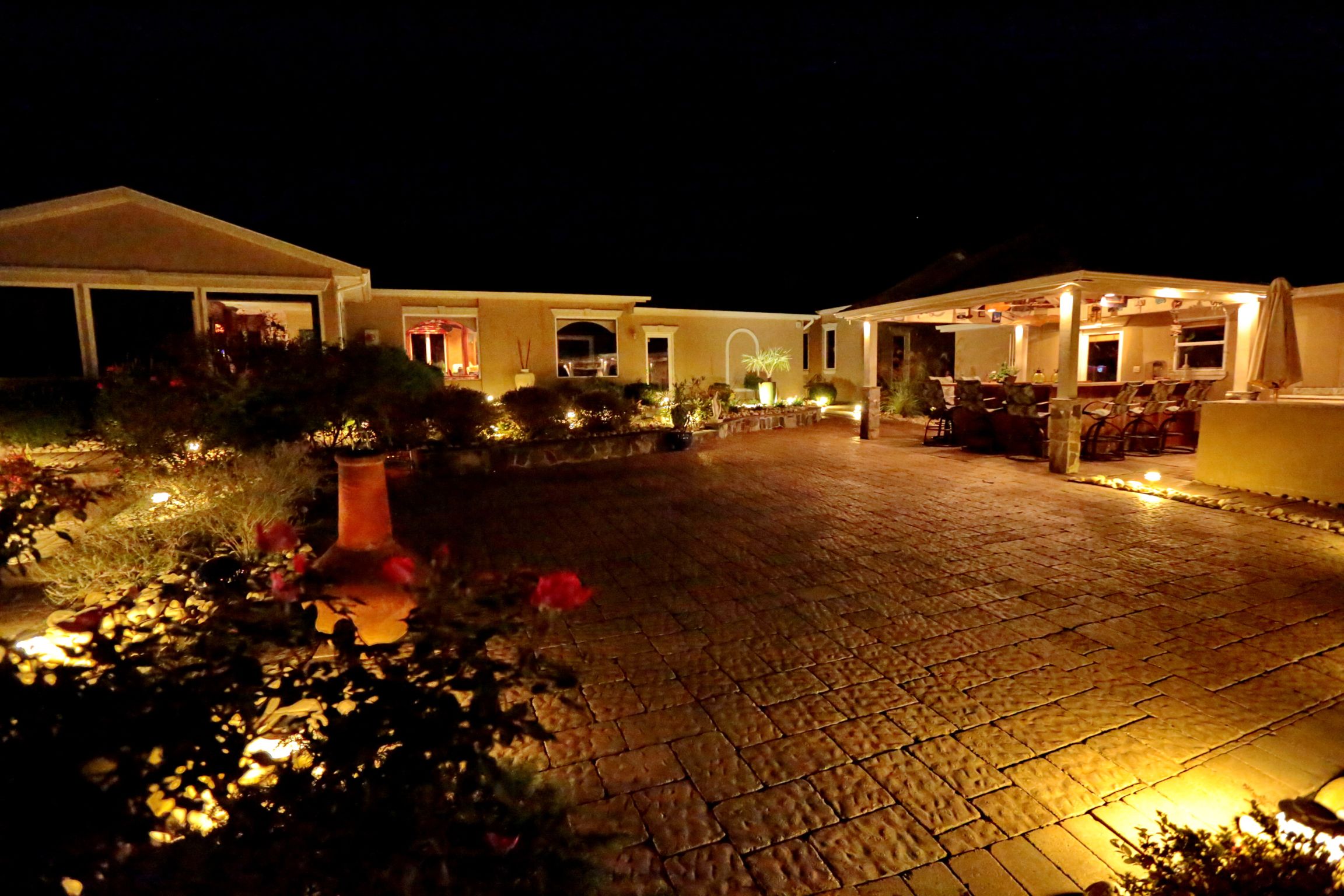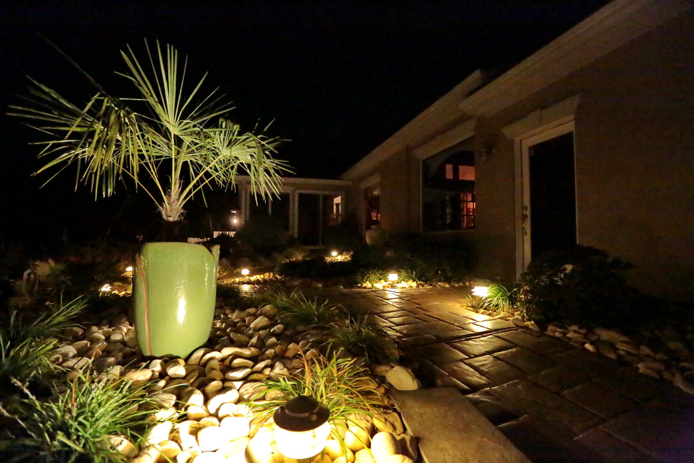 Beauty - Low voltage lighting accentuates the shapes and textures of a landscape and its structures. Lighting designers not only paint pictures with light, they create dramatic scenes that give the viewer a dynamic experience of the property.